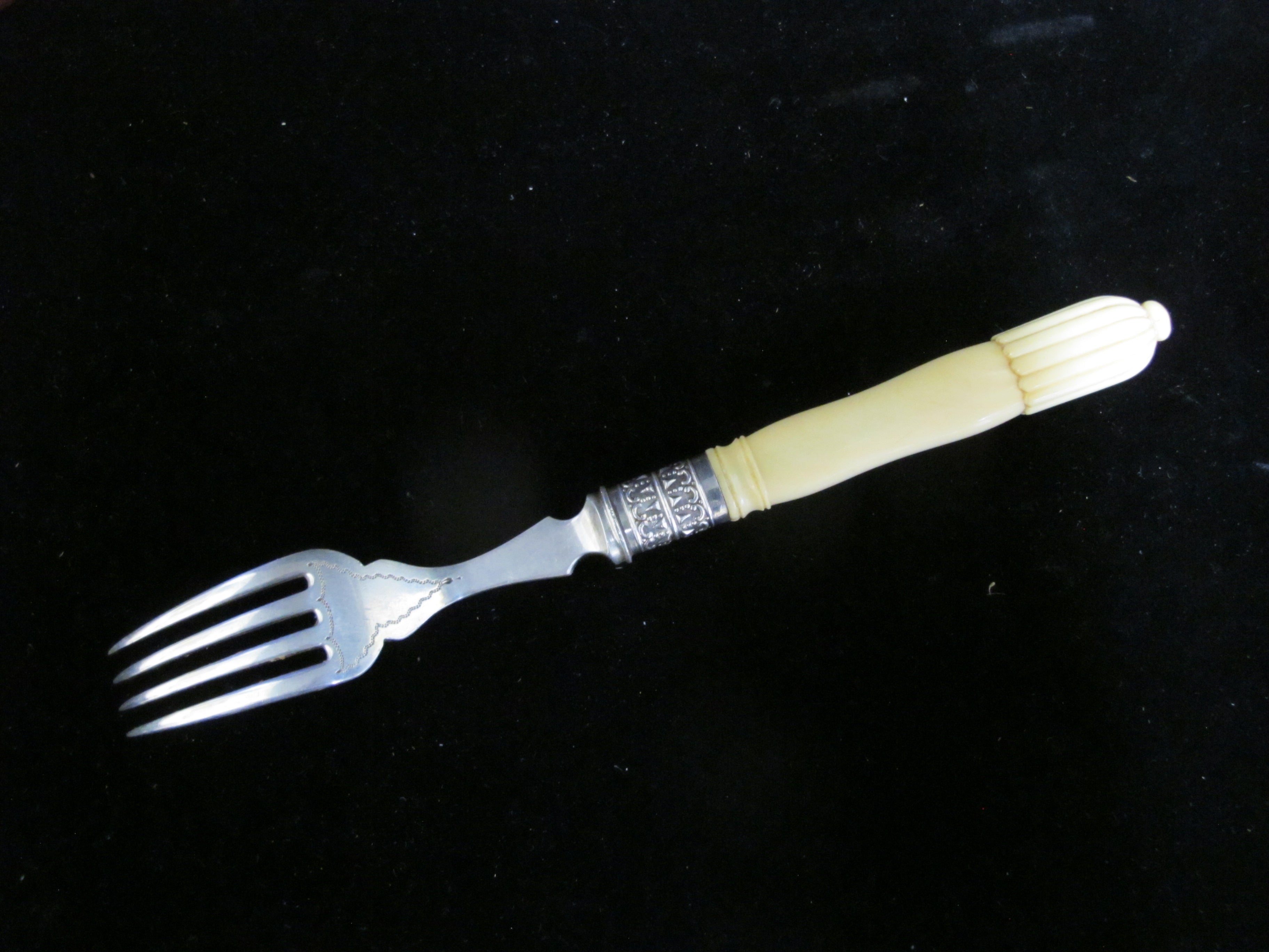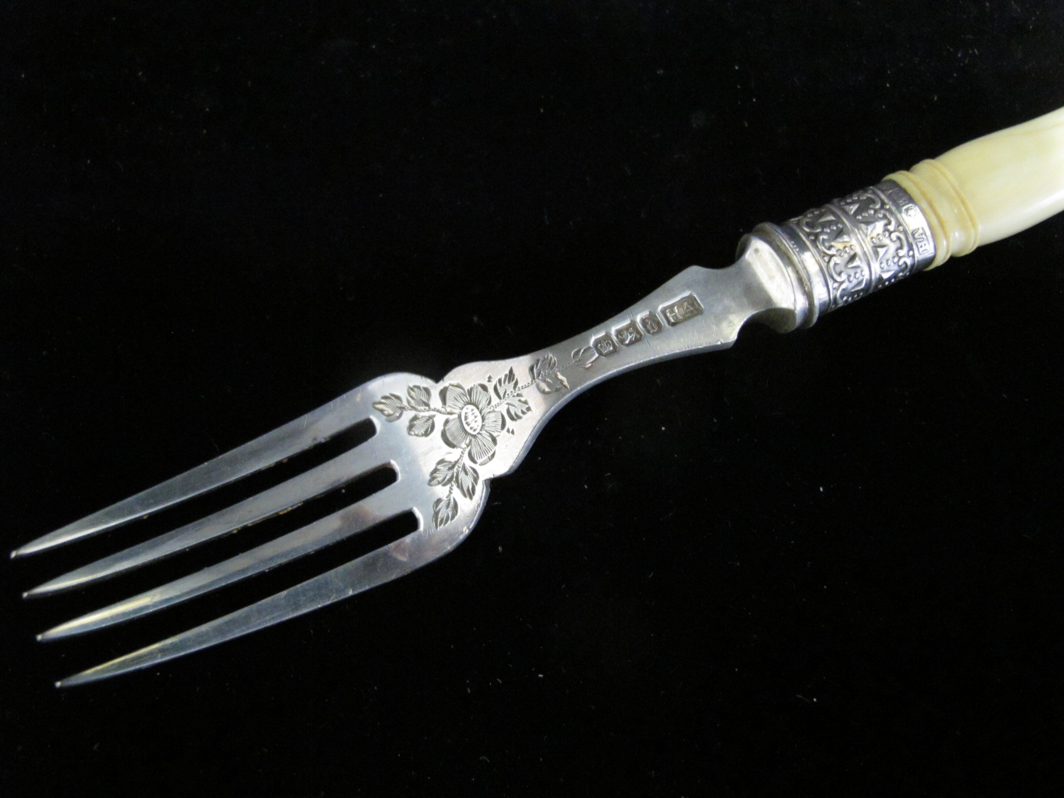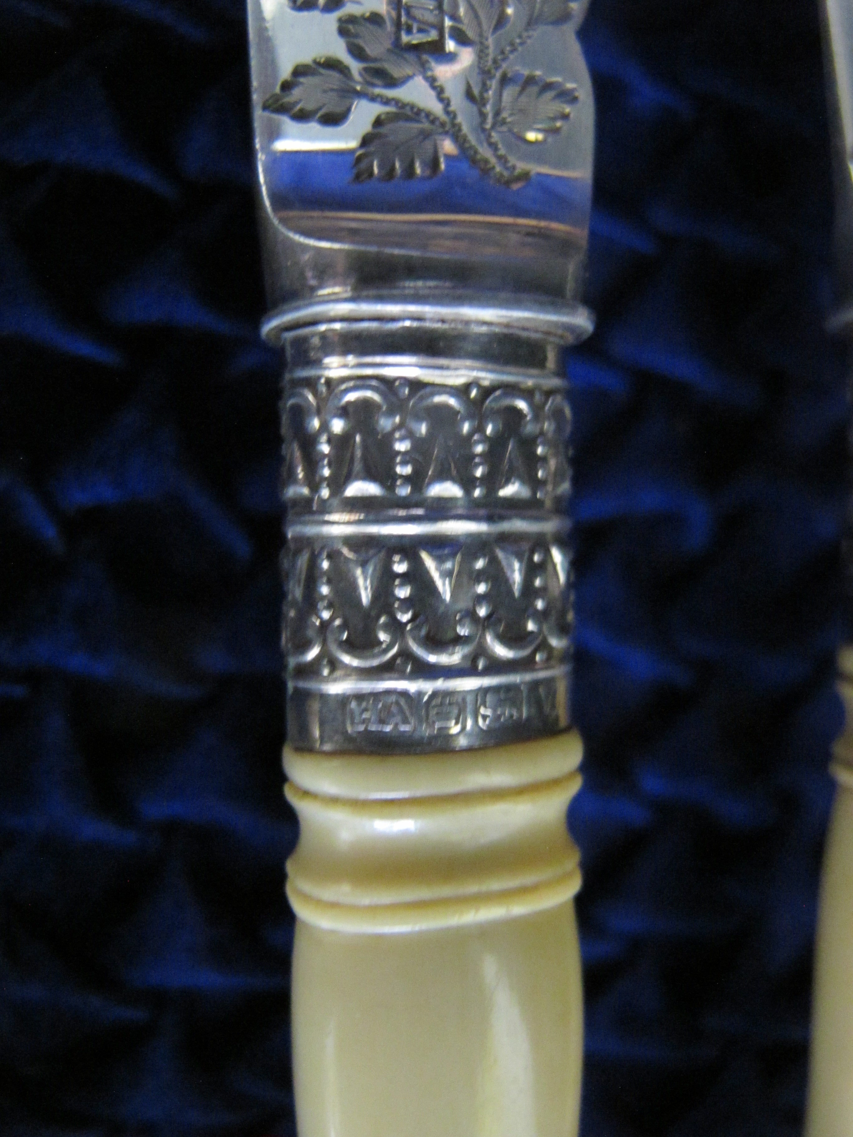 English VICTORIAN Engraved BUTTERFLY Sterling Silver FISH Knife Fork Set in Case