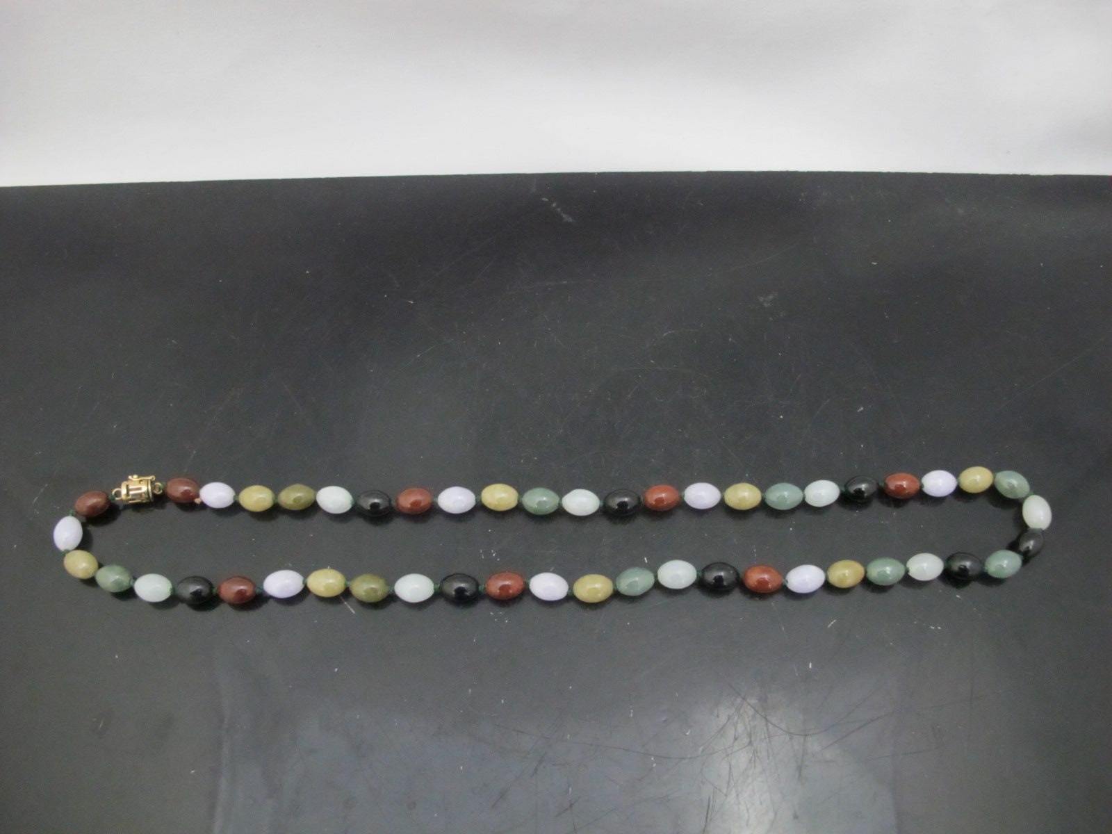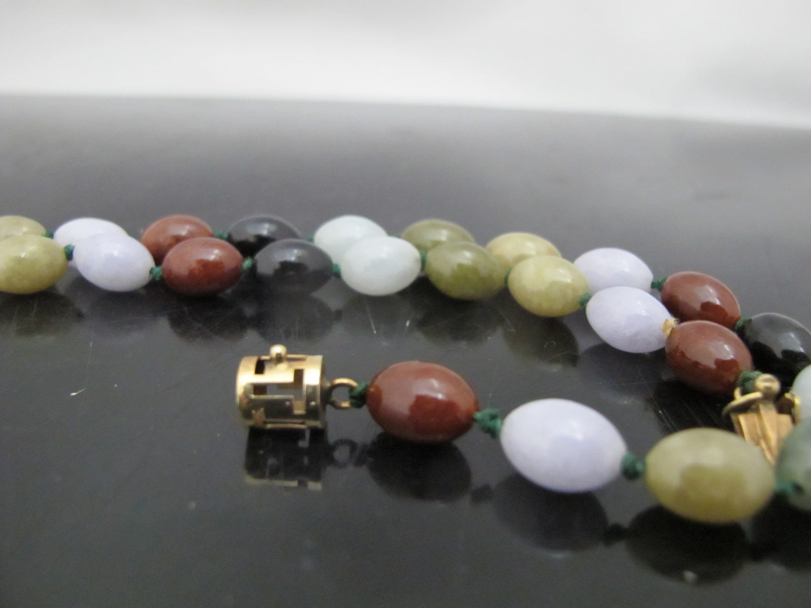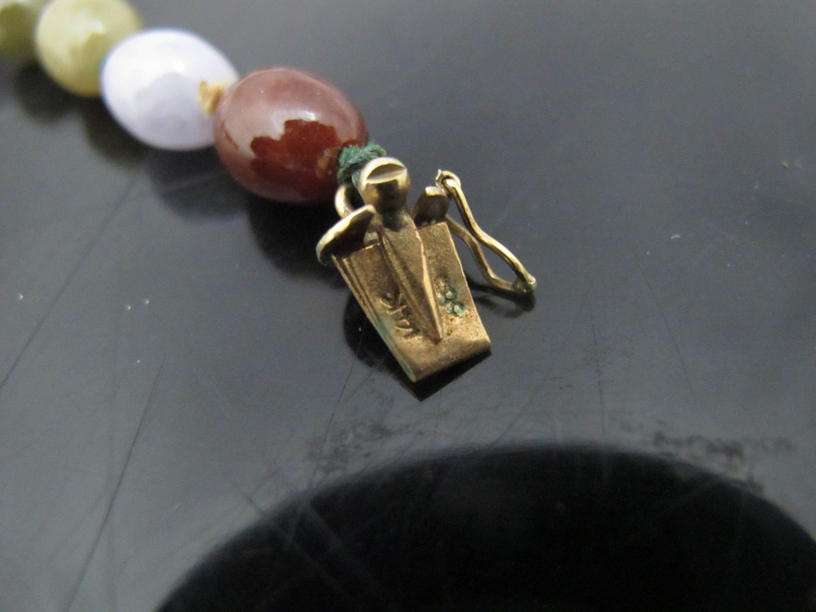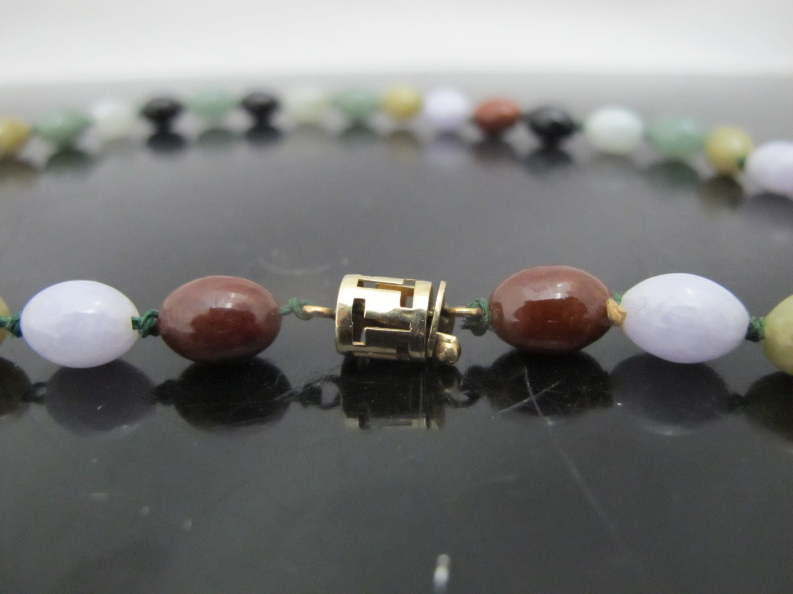 JADE Multi-Color BEADED Chinese Necklace With 14k Yellow Gold Clasp