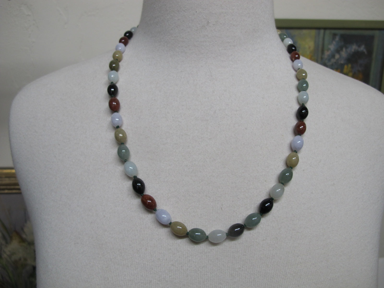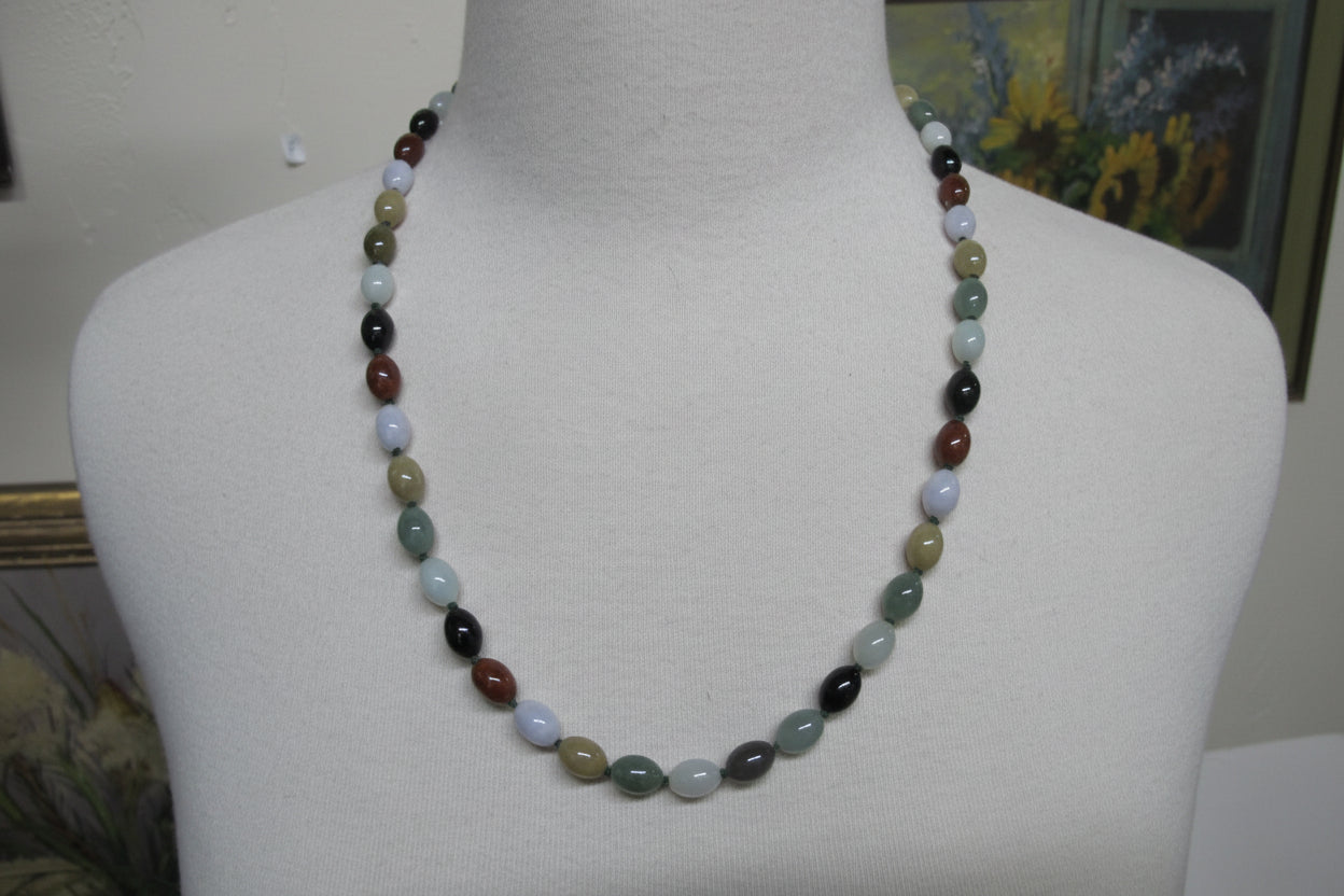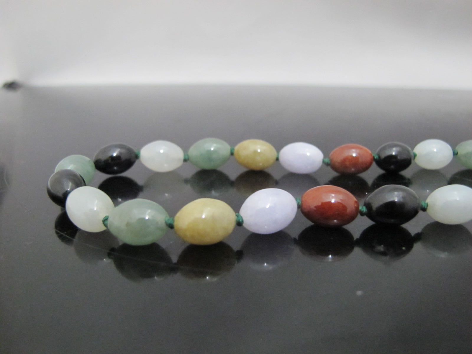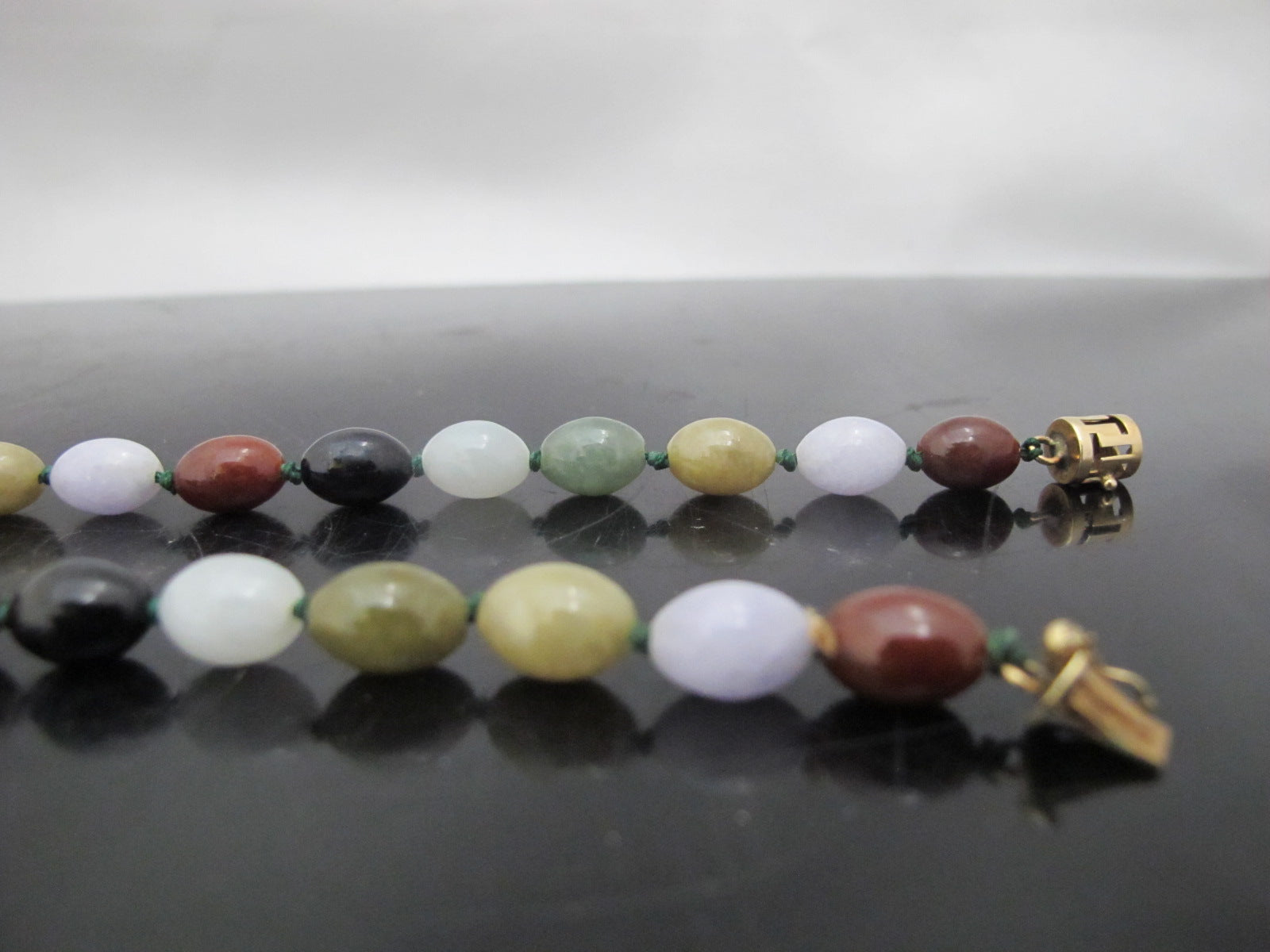 JADE Multi-Color BEADED Chinese Necklace With 14k Yellow Gold Clasp