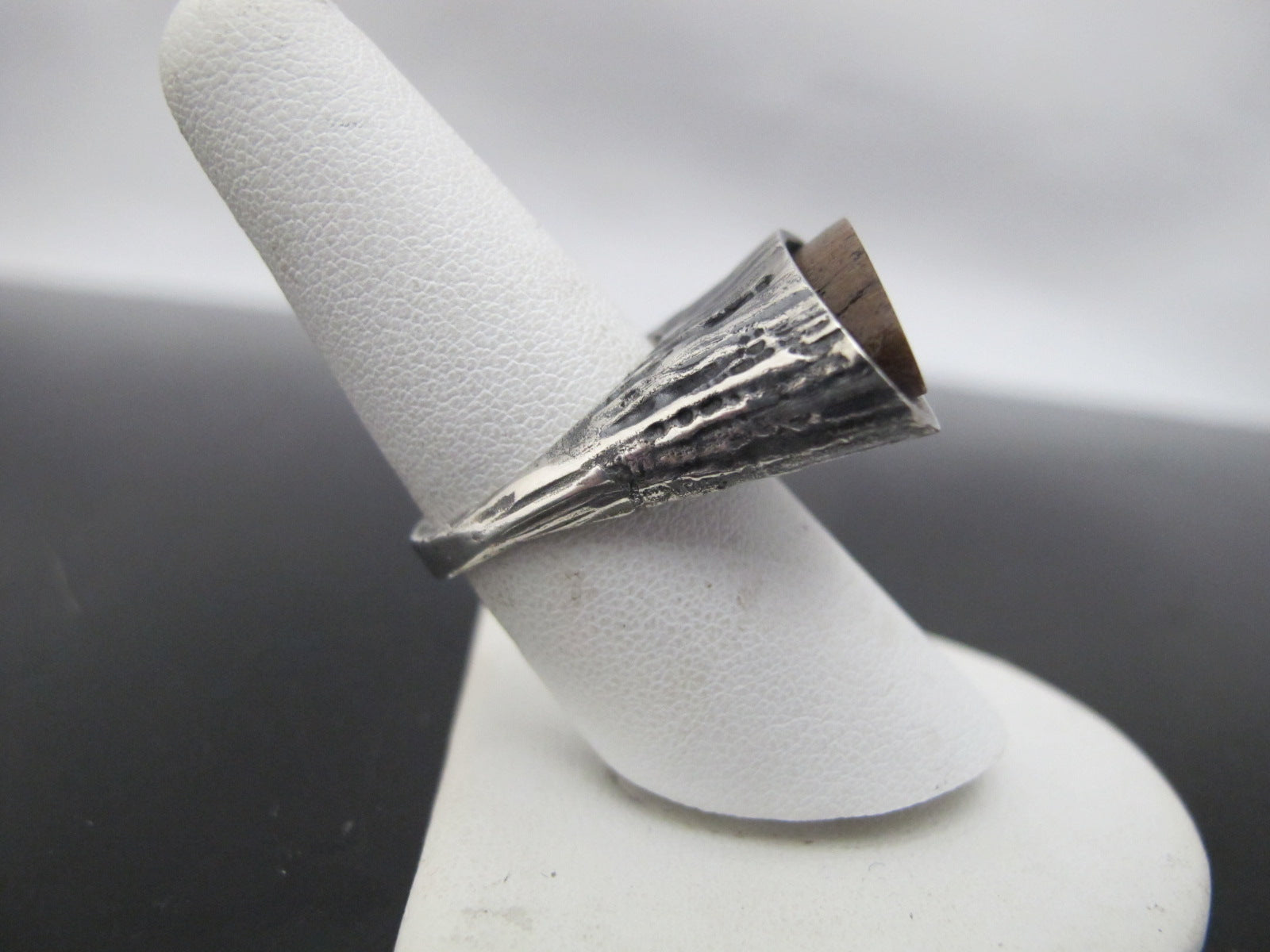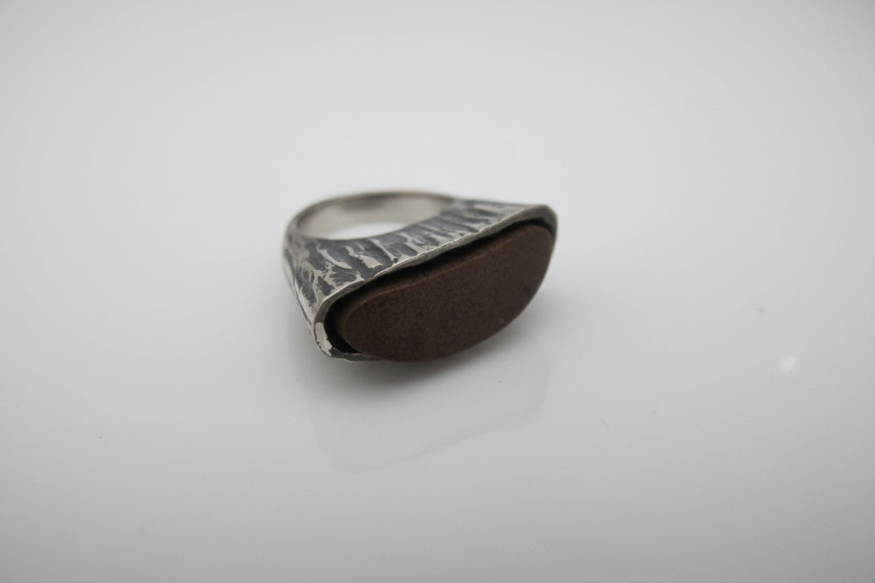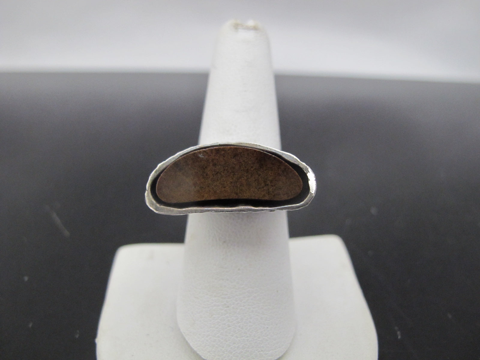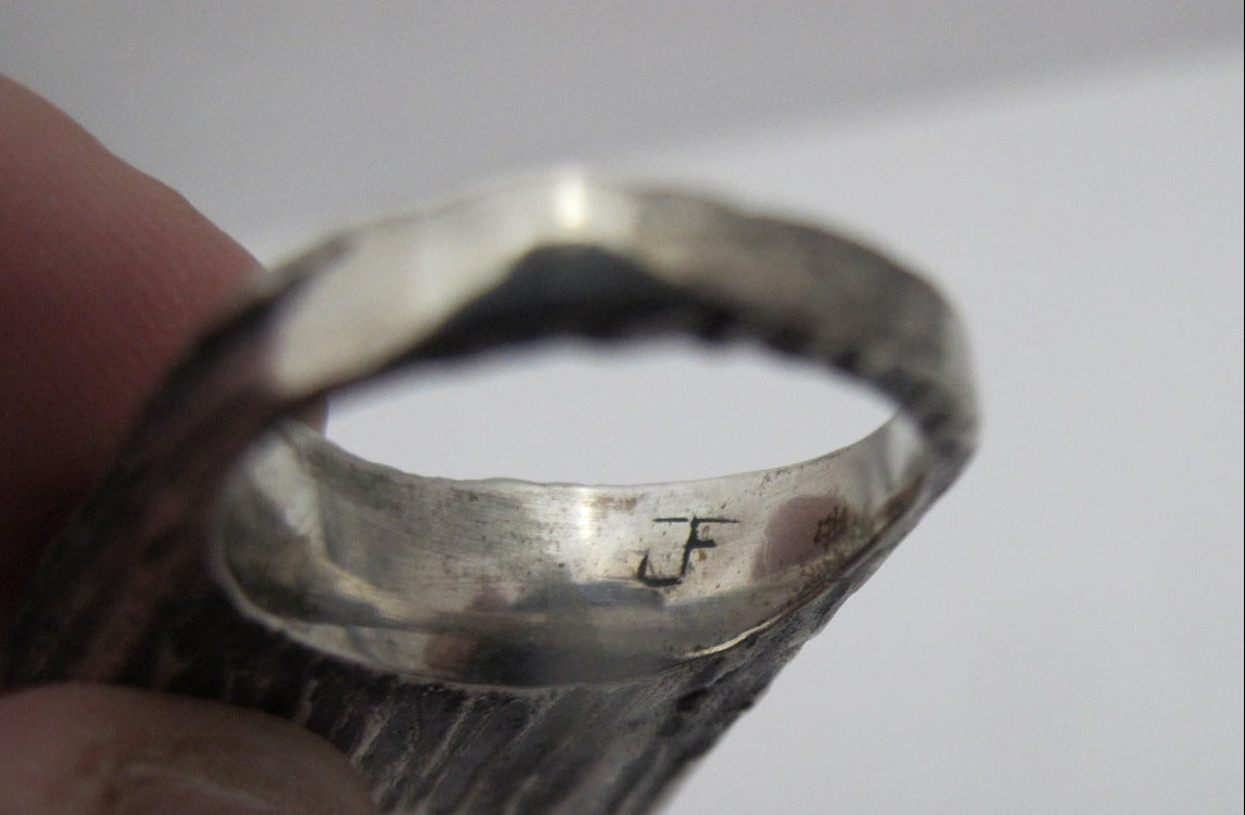 NATIVE American Brown BRONZITE Sterling Silver Brutalist Style Ring Signed JF