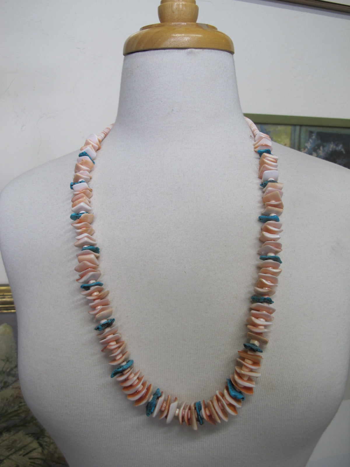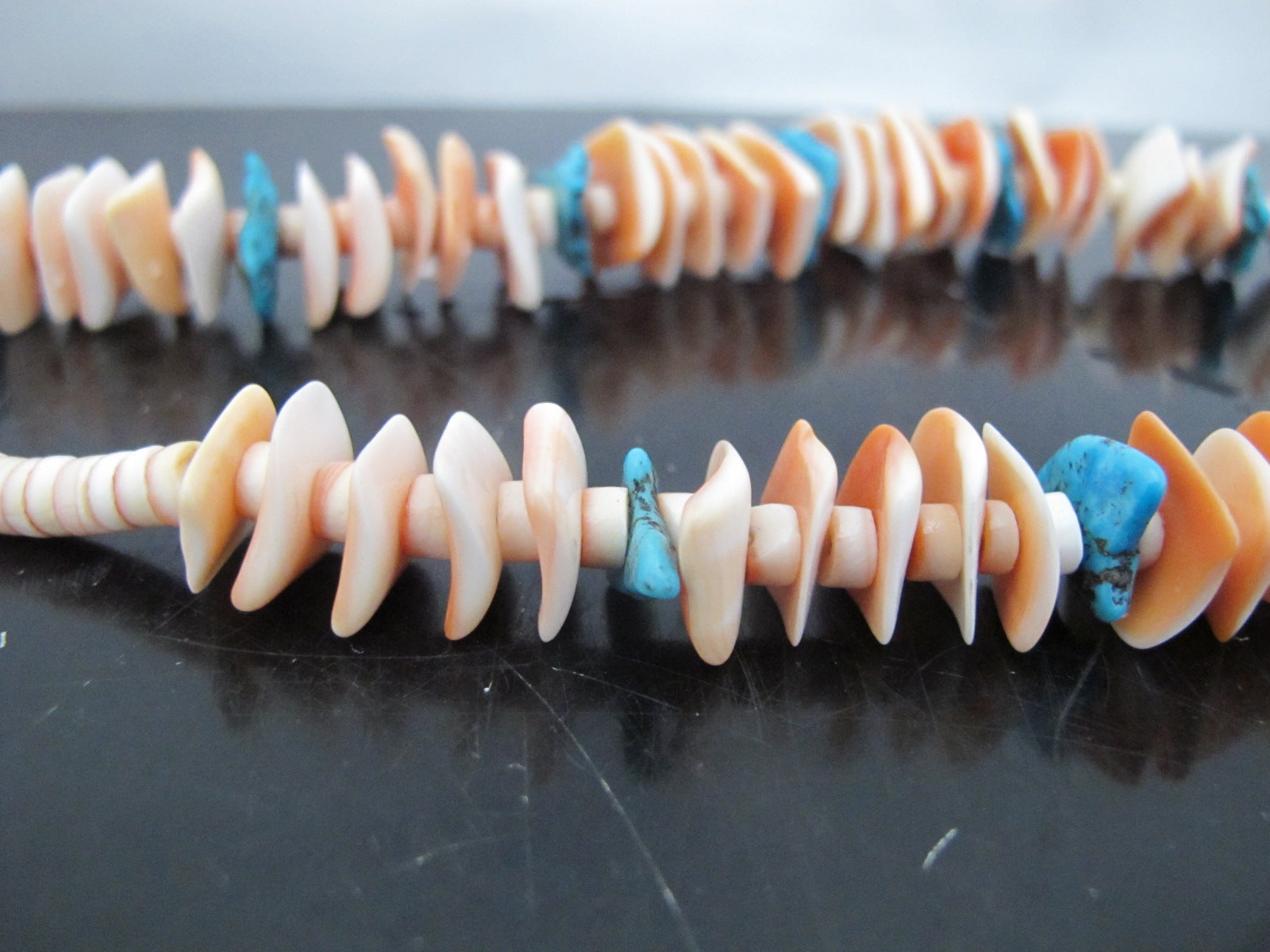 SANTO DOMINGO Pueblo Native American TURQUOISE & Pink CORAL Chip Bead Necklace
