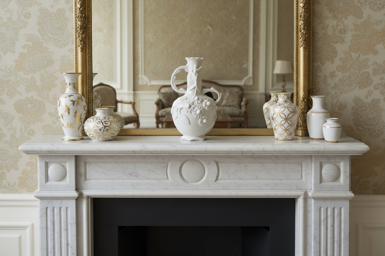 BLANC de CHINE Style Glazed White Porcelain Hight Relief FLOWERS & Leaves Vase