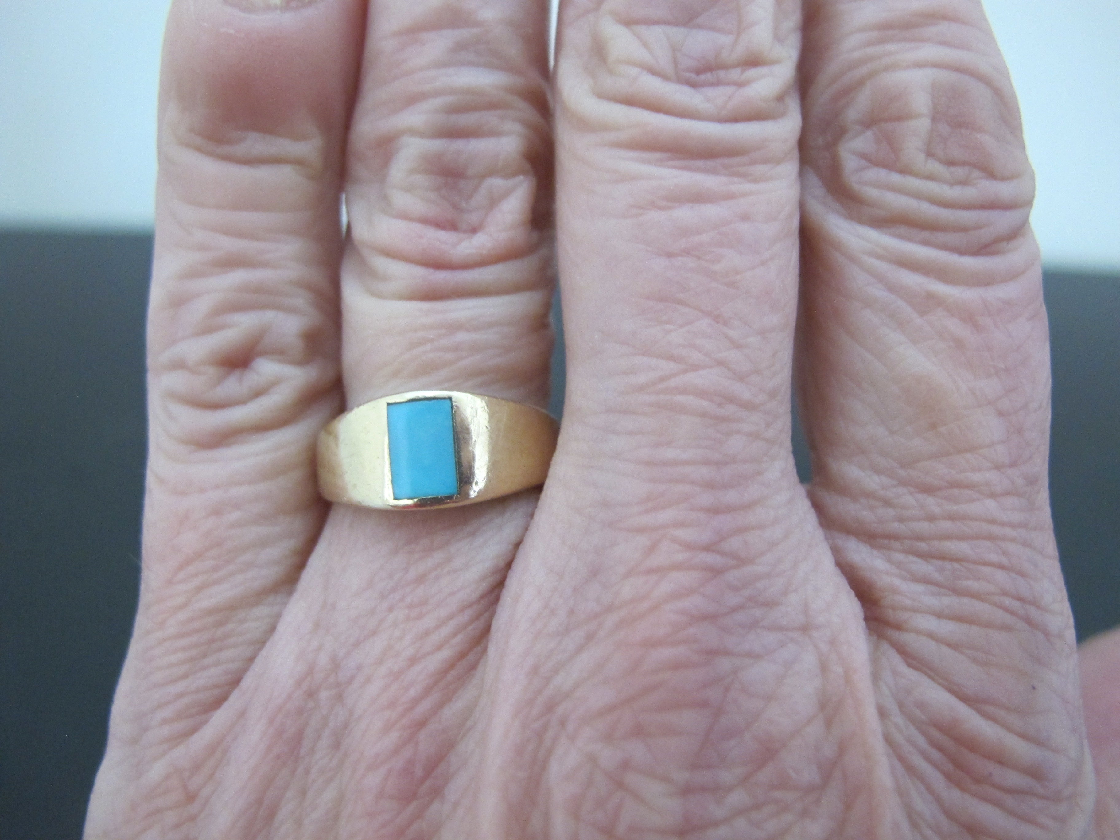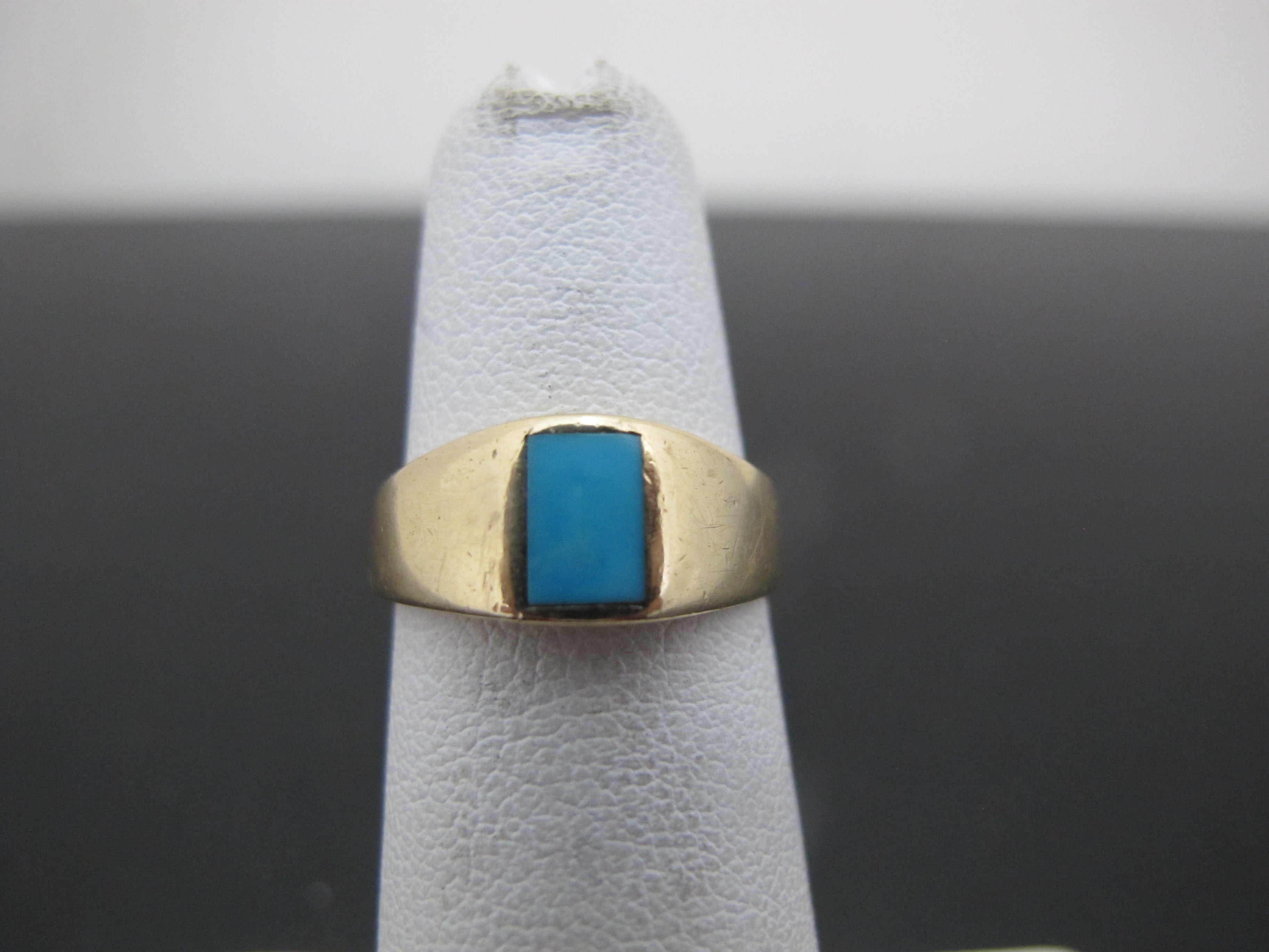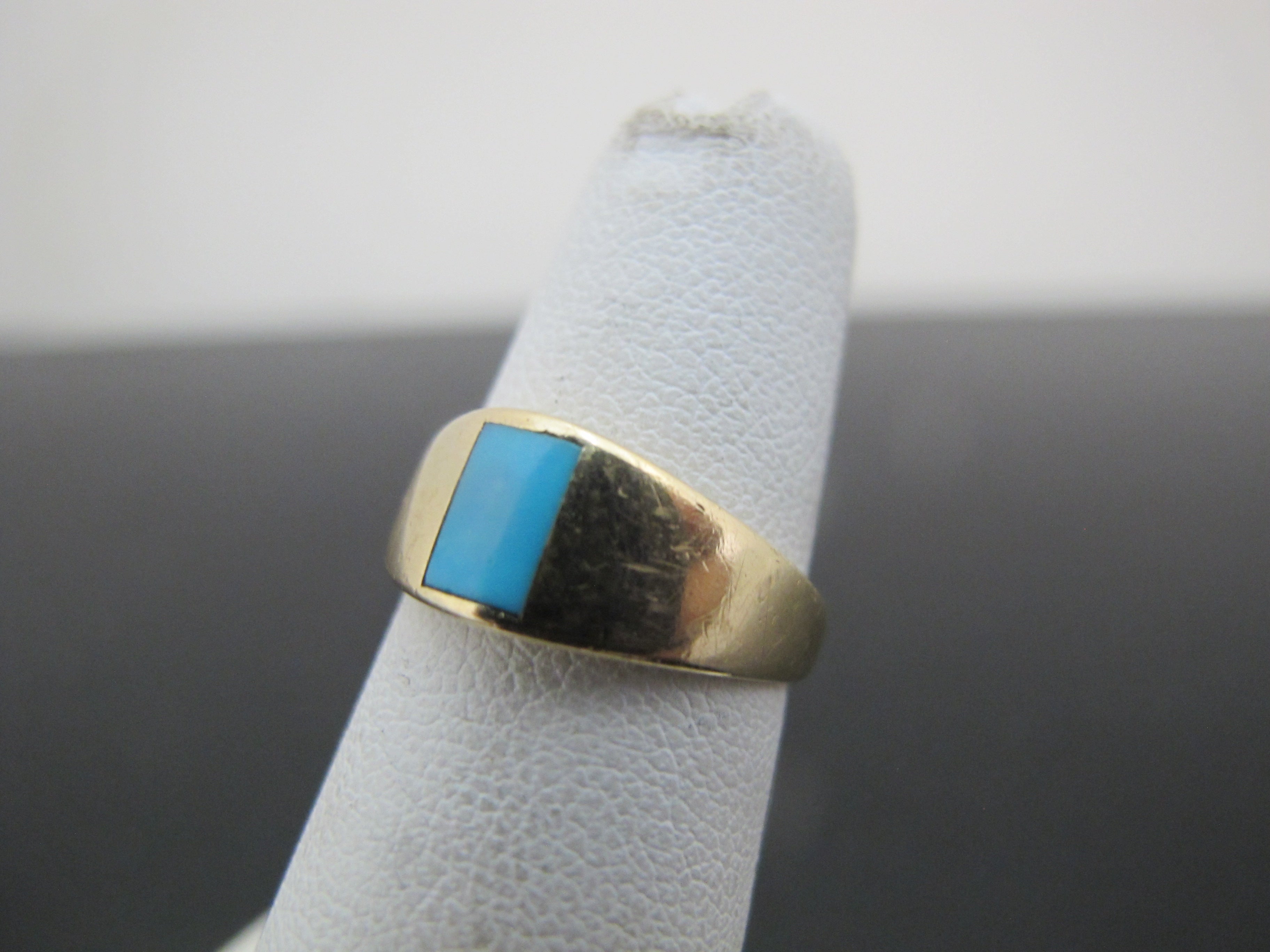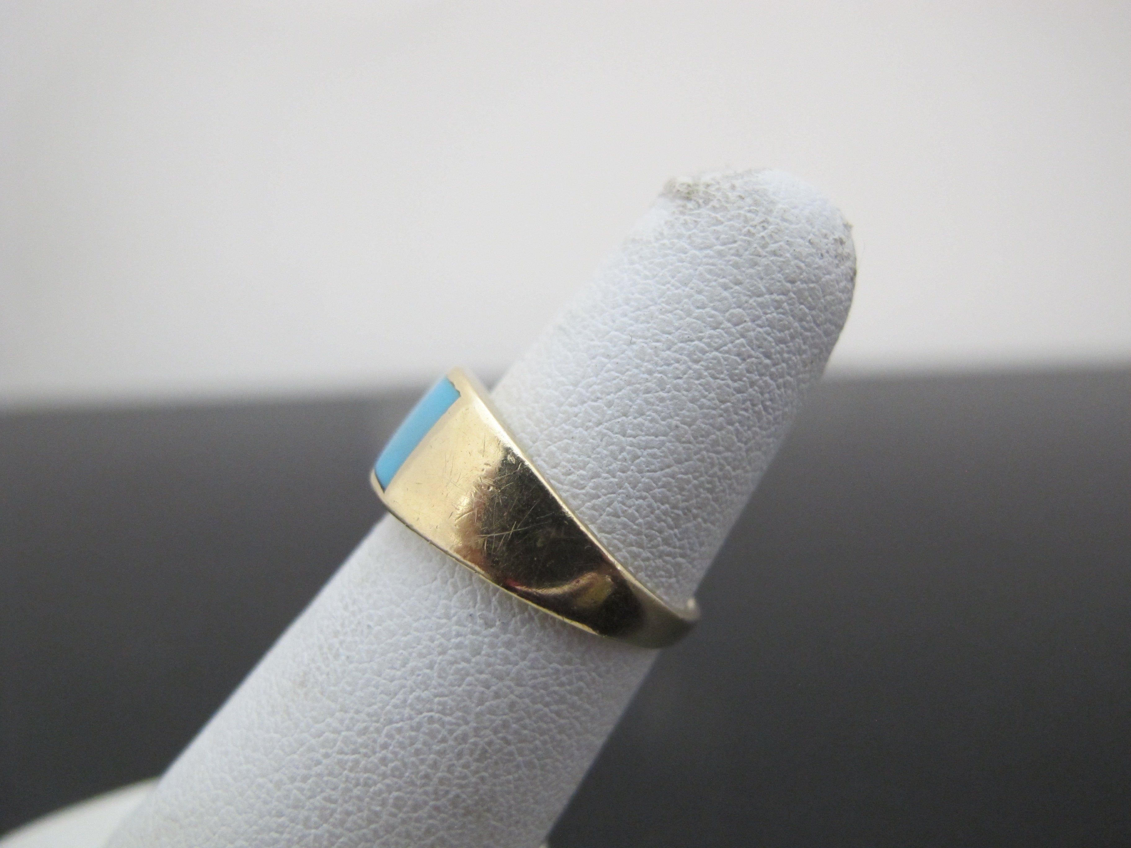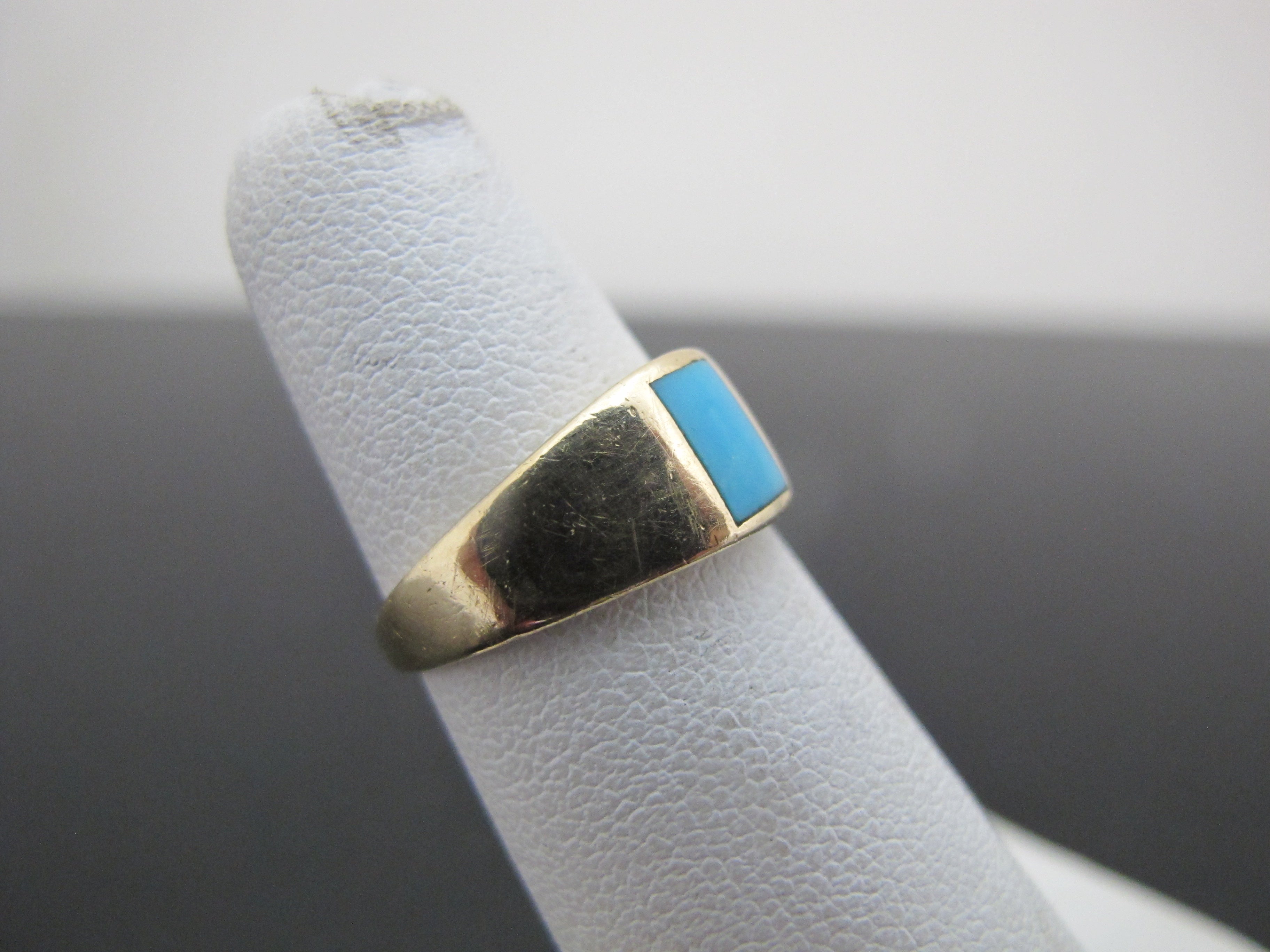 Simple, but really sweet 14k yellow gold ring with Persian Turquoise center. Very small size 3.75, so I'm listing as a pinky ring. Turquoise measures 5.1mm x 4.2mm. Total weight 2.92 grams.