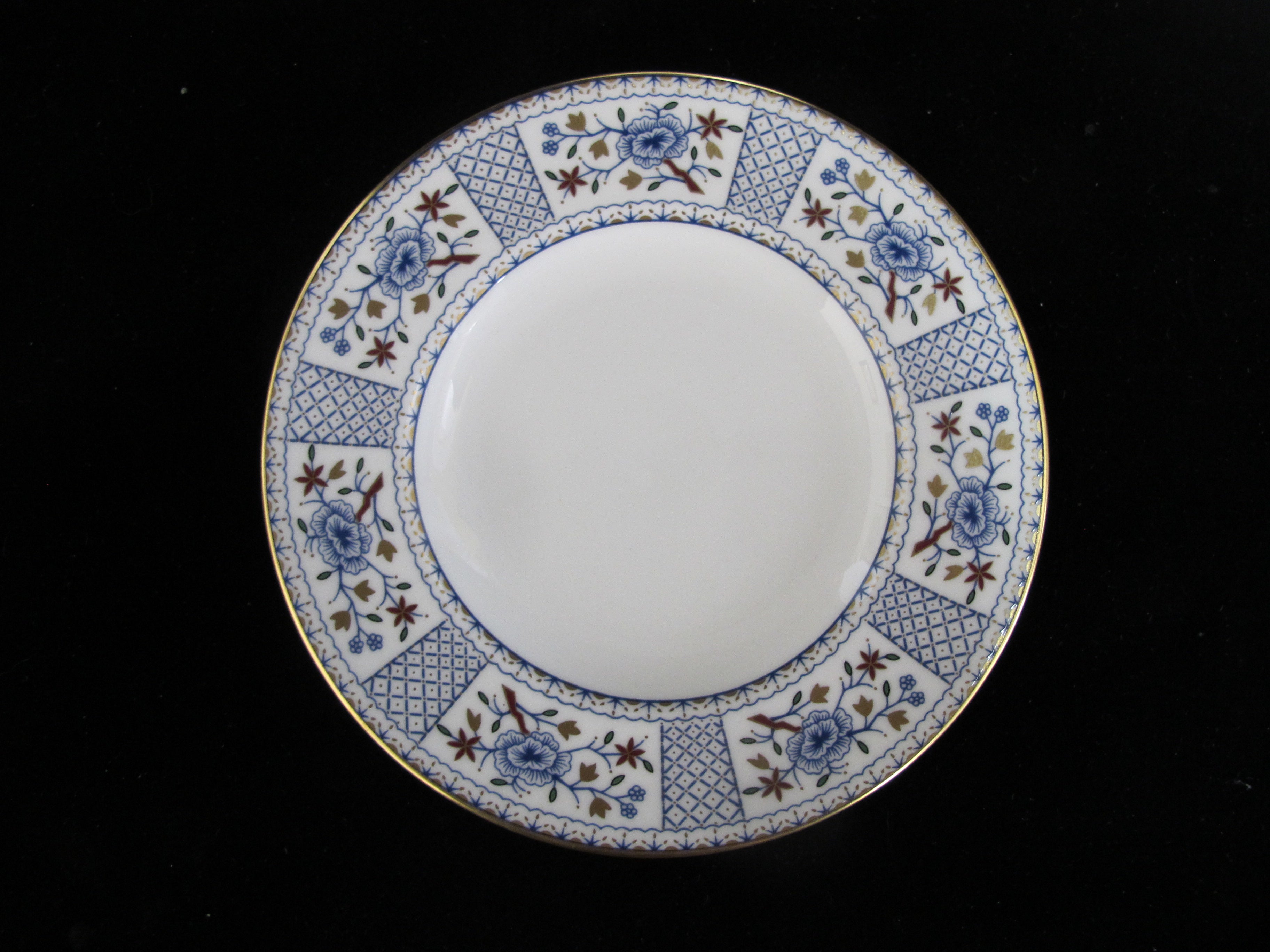 ROYAL Crown DERBY China Flower MANDARIN Blue Floral 6 1/4" Bread Plate Set of 4