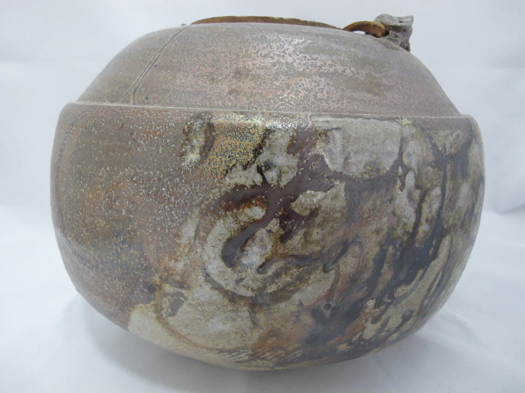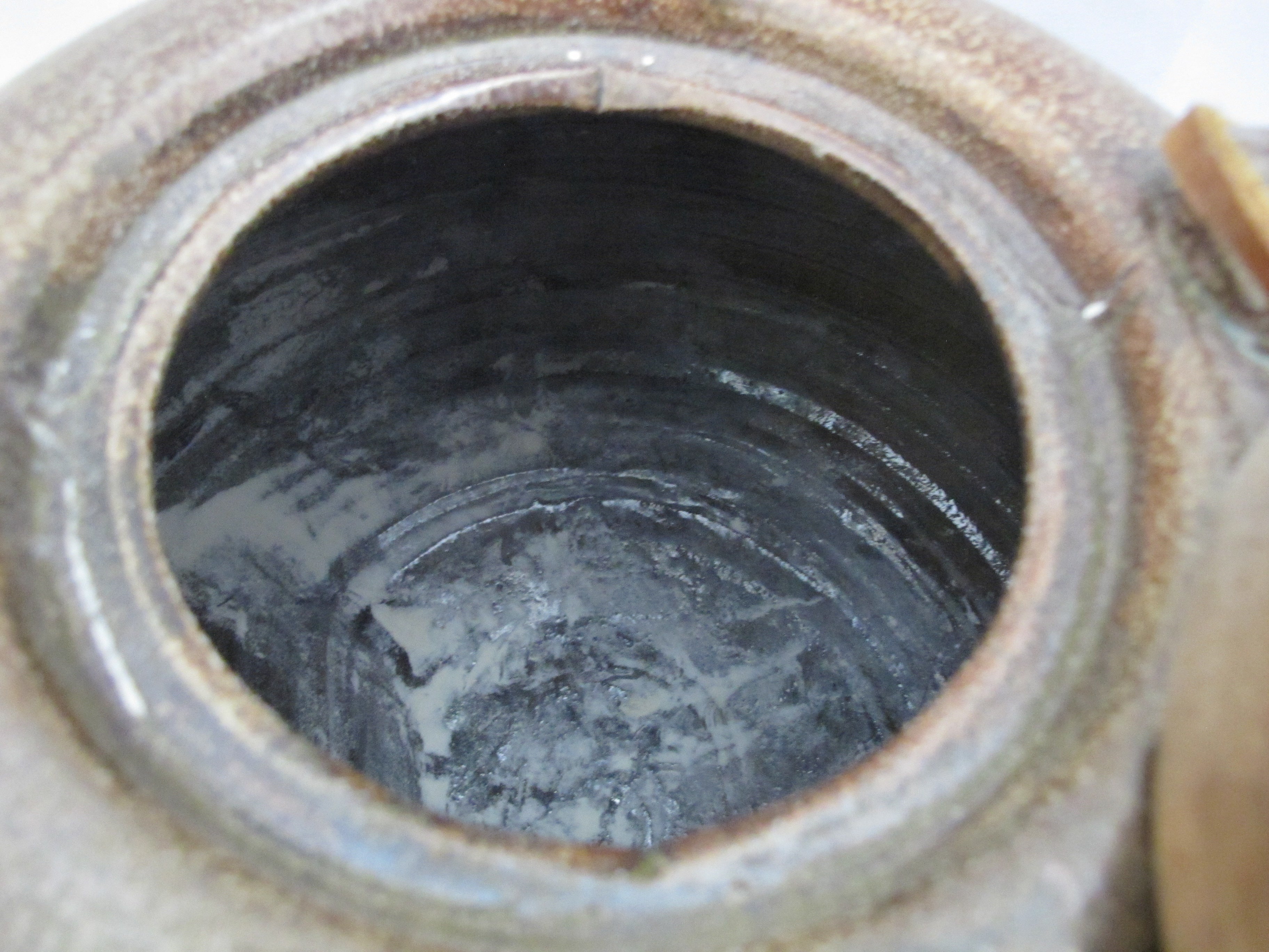 SANDRA JOHNSTONE Salt Fired Glaze ABSTRACT Art Pottery JAR Jug with Wood Lid